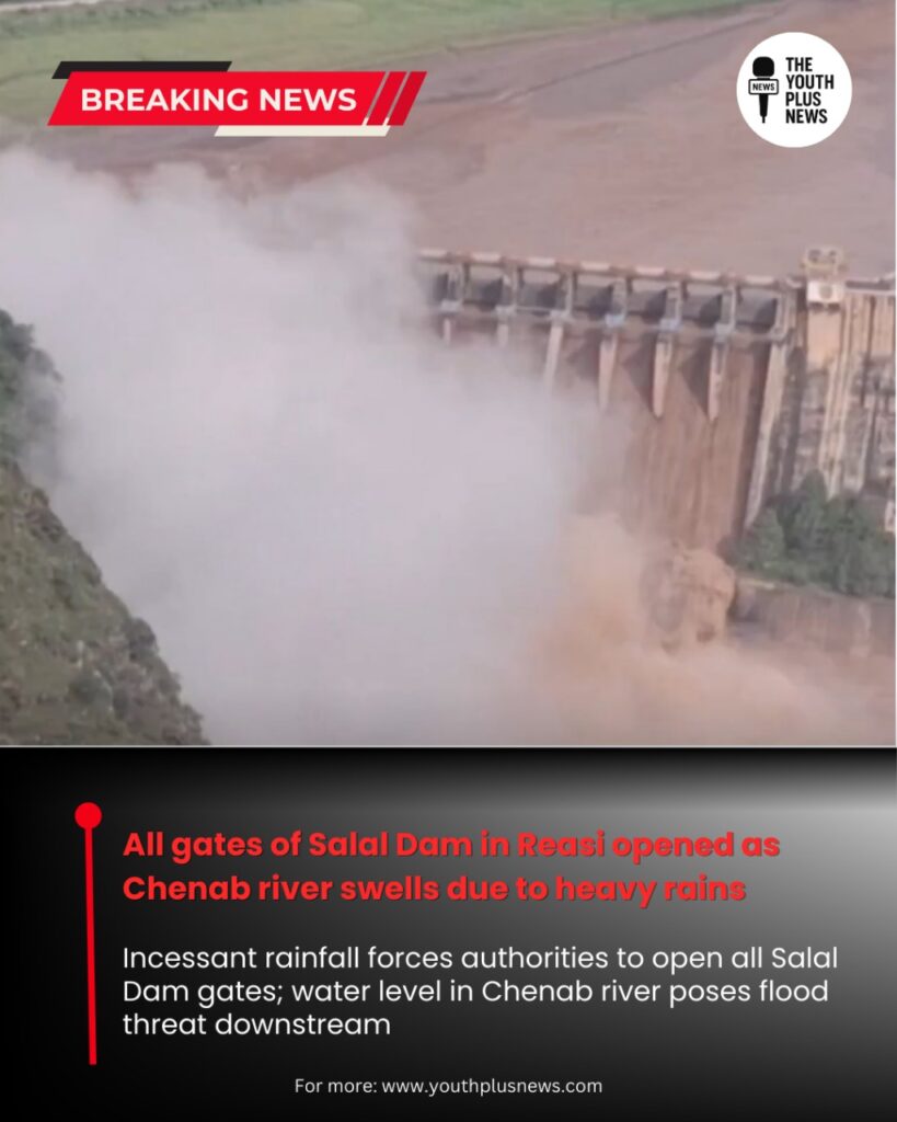 Reasi, Jammu and Kashmir: Authorities on Saturday opened all gates of the Salal Dam after a sharp rise in the Chenab river’s water level due to continuous heavy rainfall. Officials confirmed that the decision was taken as a precautionary measure to release excess water and prevent potential damage to the dam structure. The release has triggered high water flow downstream, prompting alerts for residents in low-lying areas. District administration, police, and disaster management teams are closely monitoring the situation and urging citizens to stay away from riverbanks. Rescue teams have been kept on standby to deal with any emergencies. Meanwhile, the Meteorological Department has predicted continued rainfall, raising concerns of possible flooding in several districts