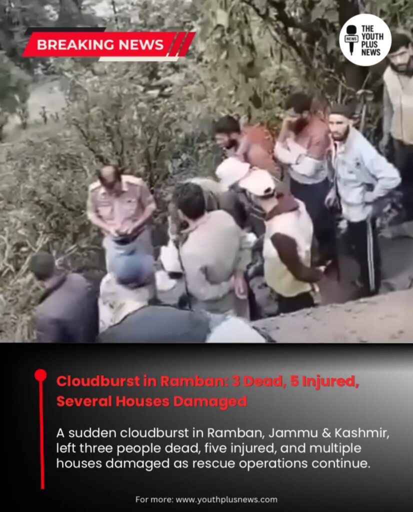 Ramban, August 24, 2025 – A devastating cloudburst hit Ramban district of Jammu & Kashmir, resulting in three deaths and five injuries. Several residential houses have also been severely damaged in the disaster.