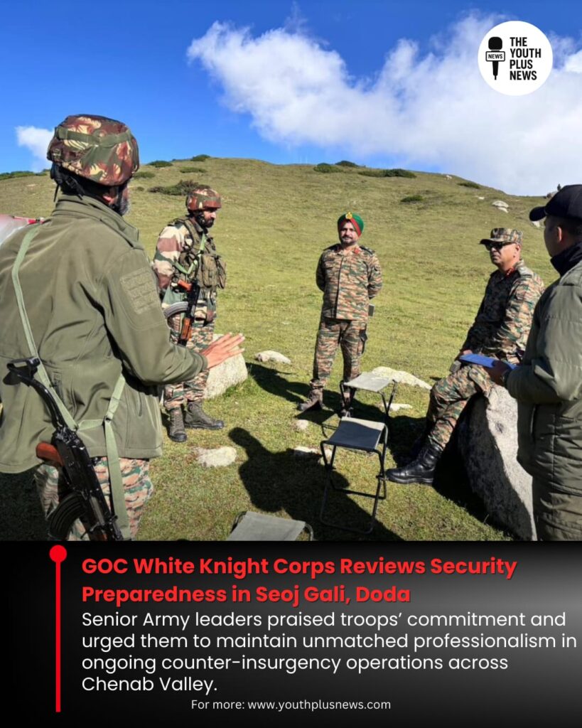 The General Officer Commanding (GOC) White Knight Corps, accompanied by the GOC Counter Insurgency Force (Delta), visited Seoj Gali in Doda district to review the security situation and operational preparedness of troops deployed in the region. The commanders were briefed on ongoing counter-insurgency operations and measures to ensure peace in the Chenab Valley. Commending the professionalism of soldiers operating under challenging conditions, the GOC urged all ranks to maintain unmatched excellence and resolve in combating terrorism, reaffirming the Army’s commitment to stability and security in Jammu and Kashmir.