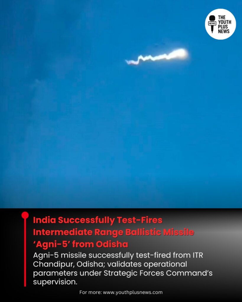 India on Wednesday successfully test-fired its Intermediate Range Ballistic Missile (IRBM) ‘Agni-5’ from the Integrated Test Range (ITR), Chandipur, Odisha. The test, conducted on August 20, 2025, was carried out under the aegis of the Strategic Forces Command and validated all the missile’s operational and technical parameters.