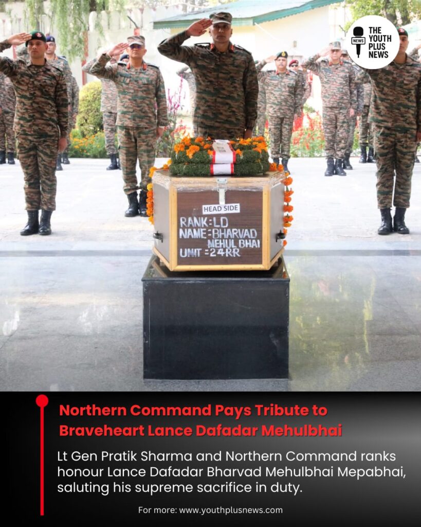 The Indian Army’s Northern Command on Saturday paid homage to Lance Dafadar Bharvad Mehulbhai Mepabhai, who made the supreme sacrifice while performing his duty. Lt Gen Pratik Sharma, Army Commander, Northern Command, led the wreath-laying ceremony, joined by all ranks who stood in solemn silence to honour the fallen soldier. Officials stated that his dedication and bravery embody the highest traditions of the Indian Army. The Northern Command extended heartfelt condolences to the bereaved family, affirming their steadfast support during this difficult hour. The sacrifice of Lance Dafadar Mehulbhai will be remembered as a beacon of courage and devotion to the motherland.