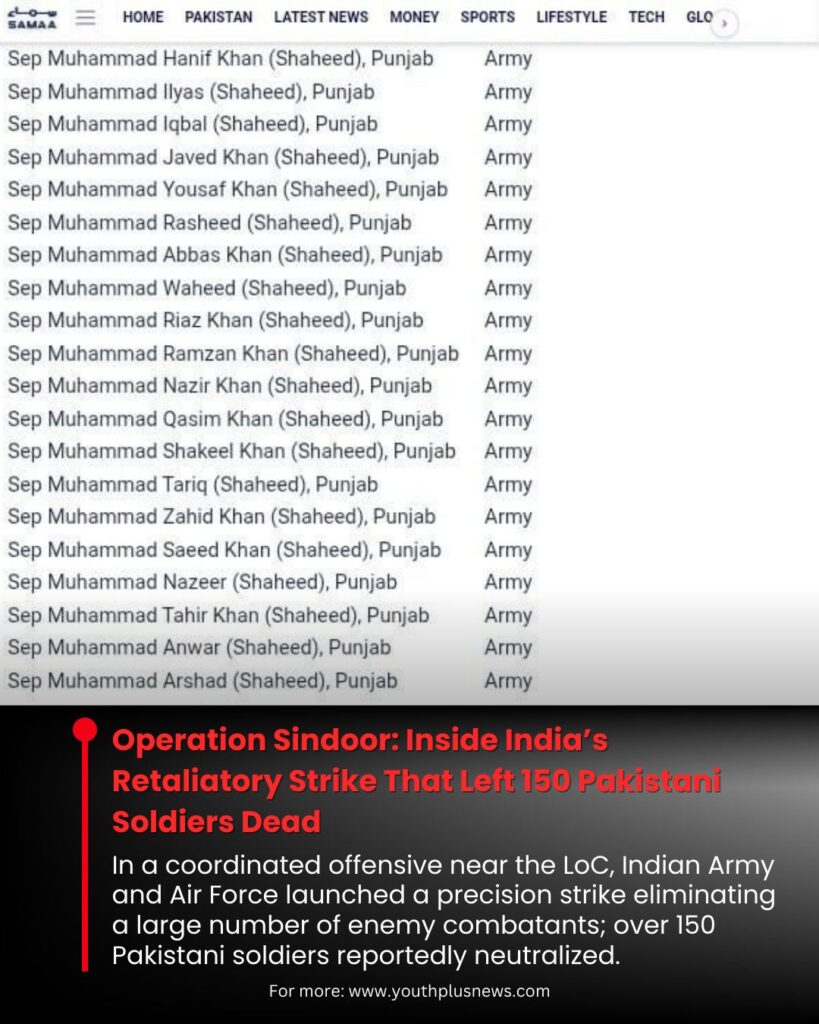 New Delhi — In what has emerged as one of India’s most assertive and strategically calibrated military operations in recent history, Operation Sindoor marked a turning point in the nation’s counter-terror and cross-border security doctrine. The retaliatory strike, jointly carried out by the Indian Army and the Indian Air Force (IAF), led to the elimination of more than 150 Pakistani soldiers, including key personnel operating along the Line of Control (LoC) and in depth positions within Pakistan-occupied Kashmir.