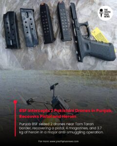 Punjab BSF seized 2 drones near Tarn Taran border, recovering a pistol, 4 magazines, and 3.7 kg of heroin in a major anti-smuggling operation.