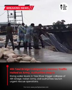 Jammu, Sept 3: In a major development, the 4th Tawi Bridge in Jammu fully collapsed on Tuesday evening following a sharp rise in water levels