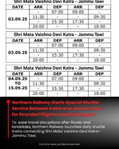 In view of travel disruptions caused by recent floods and landslides in Jammu and Kashmir, Northern Railway has introduced shuttle train services between Shri Mata