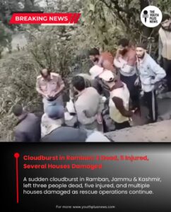 Ramban, August 24, 2025 – A devastating cloudburst hit Ramban district of Jammu & Kashmir, resulting in three deaths and five injuries. Several residential houses