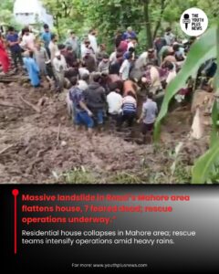 A massive landslide struck the Mahore area of Jammu and Kashmir’s Reasi district, flattening a residential house and leaving seven people feared dead. The incident