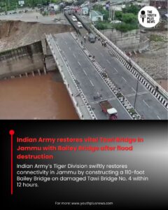 On 29th August, the Indian Army’s Tiger Division successfully revived Jammu’s Tawi Bridge (Bridge No. 4), which was severely damaged during the recent floods, causing