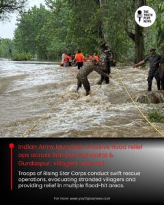 The Indian Army has launched extensive flood relief operations in Jammu, Punjab, and adjoining areas, following flash floods that submerged several villages. Troops of the