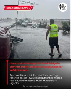 The 4th Tawi Bridge in Jammu has sustained damage following continuous heavy rainfall in the region, forcing authorities to close the bridge for vehicular movement.