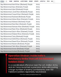 Operation Sindoor: Over 150 Pakistani Soldiers Killed in Precision Indian Strike