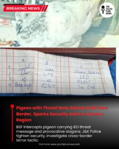 In an unusual yet alarming incident, the Border Security Force (BSF) intercepted a pigeon flying across the International Border in the RS Pura sector of
