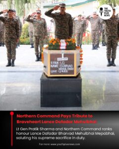 The Indian Army’s Northern Command on Saturday paid homage to Lance Dafadar Bharvad Mehulbhai Mepabhai, who made the supreme sacrifice while performing his duty. Lt