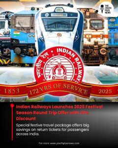 Indian Railways has announced a special Round Trip Package for the 2025 festival season, offering passengers an exclusive 20% discount on return tickets. This limited-period