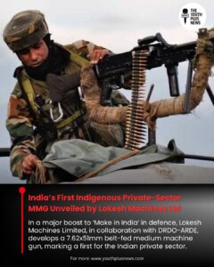 In a landmark achievement for India’s defence manufacturing ecosystem, Hyderabad-based Lokesh Machines Limited has successfully developed the country’s first indigenously built Medium Machine Gun (MMG)