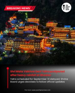 The Shri Mata Vaishno Devi Shrine Board has announced that the resumption of the yatra, earlier scheduled for September 14, has been postponed due to