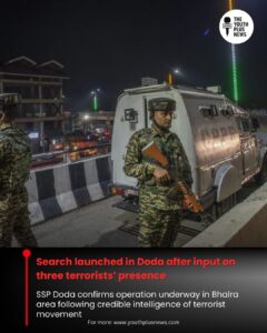 Security forces have launched a search operation in Doda district of Jammu and Kashmir after receiving intelligence inputs about the presence of three terrorists in