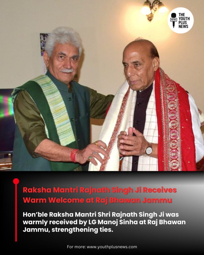 Hon’ble Raksha Mantri Shri Rajnath Singh Ji was accorded a warm welcome at Raj Bhawan, Jammu, by Lieutenant Governor Manoj Sinha. The interaction between the two leaders underscored the Centre’s continued support to Jammu and Kashmir’s security, stability, and developmental priorities. Discussions revolved around defence preparedness, welfare measures, and ongoing development initiatives aimed at transforming the region. The visit signifies strong coordination between the Ministry of Defence and J&K administration, reflecting a shared vision of peace, prosperity, and empowerment for the people of the Union Territory. This event highlights the government’s resolve to strengthen national security while ensuring holistic growth in J&K.