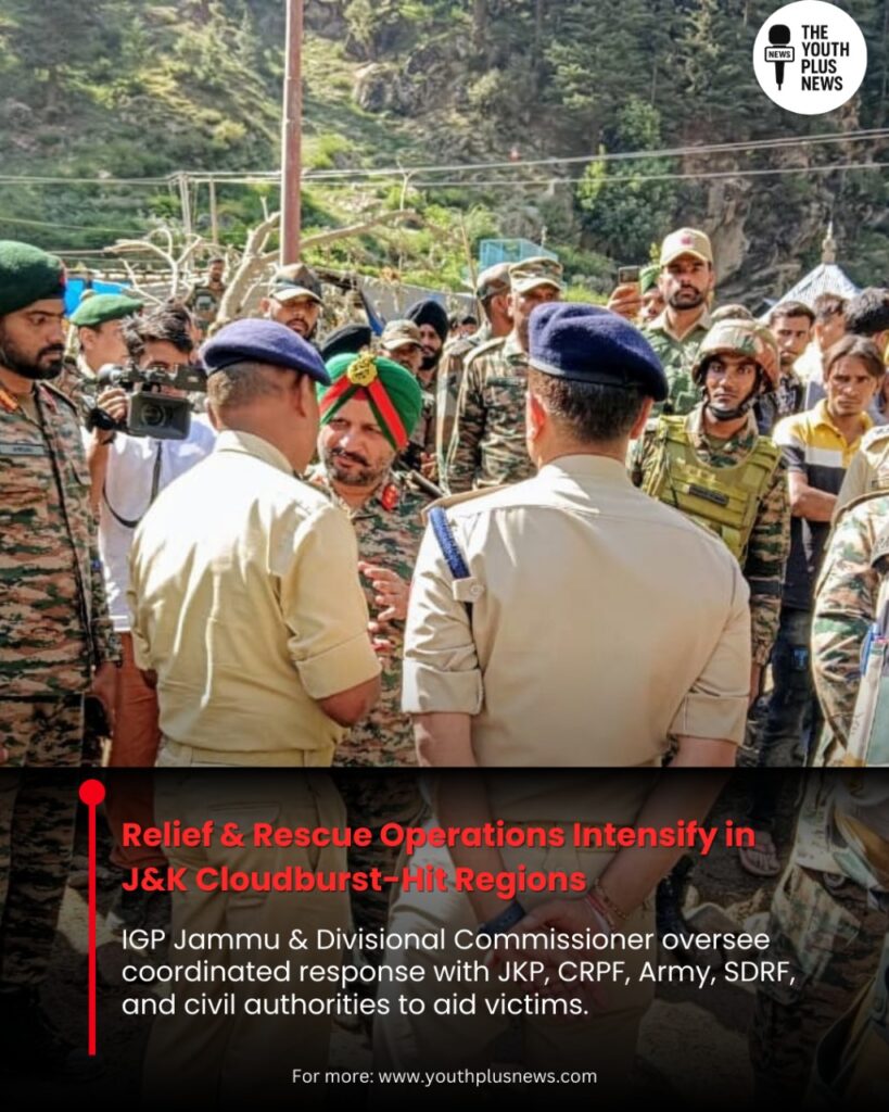 Relief and rescue operations are continuing in full swing across the cloudburst-affected regions of Jammu and Kashmir, with IGP Jammu and the Divisional Commissioner personally supervising the efforts. Teams from the J&K Police, CRPF, Indian Army, SDRF, and Civil Administration are working in close coordination to trace missing persons, evacuate stranded individuals, and provide immediate medical assistance.