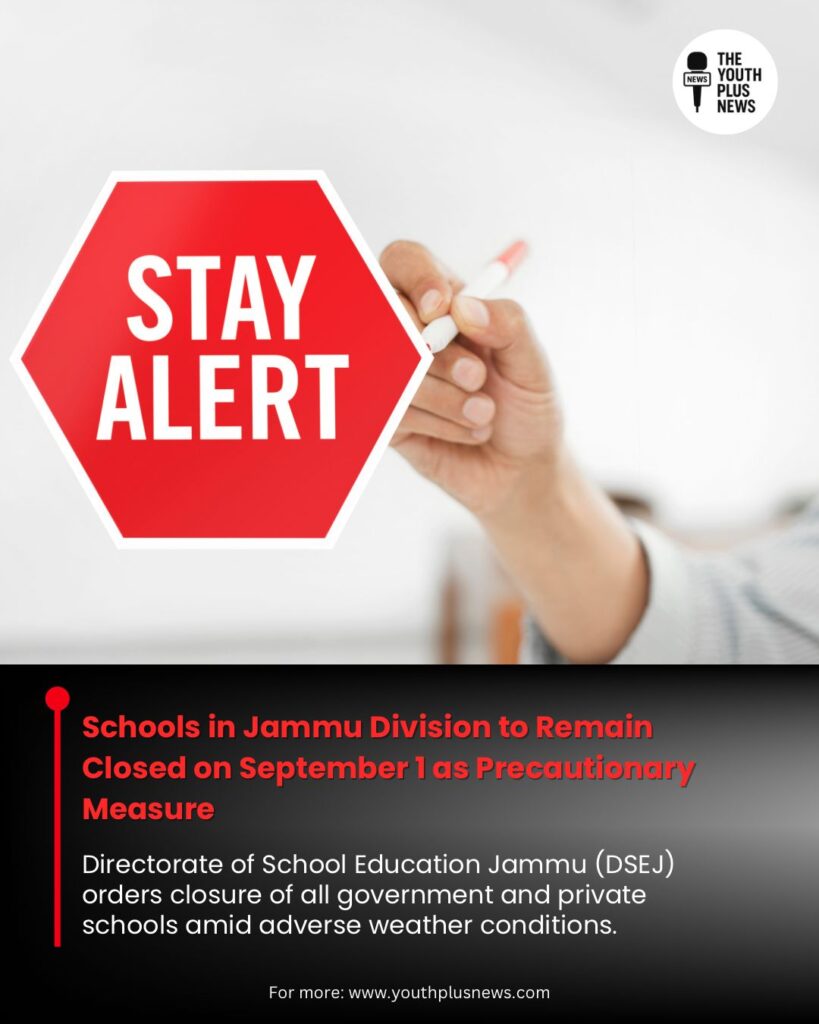 Jammu, August 31, 2025 – The Directorate of School Education Jammu (DSEJ) has announced that all government and private schools across the Jammu Division will remain closed on September 1, 2025, as a precautionary measure in view of the prevailing adverse weather conditions.
